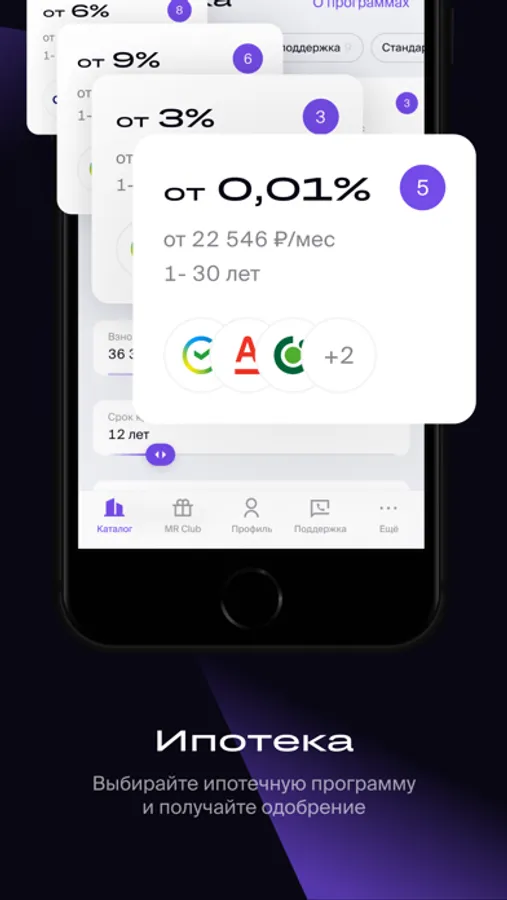 • Информация о доступных ипотечных программах и подача заявок в одном или нескольких банках теперь доступны в приложении.