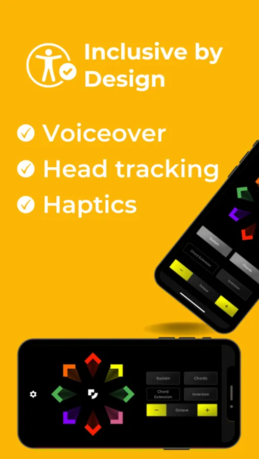 Easily play notes or chords from a chosen scale by swiping, tapping, or blinking.