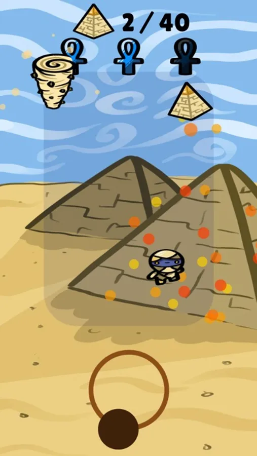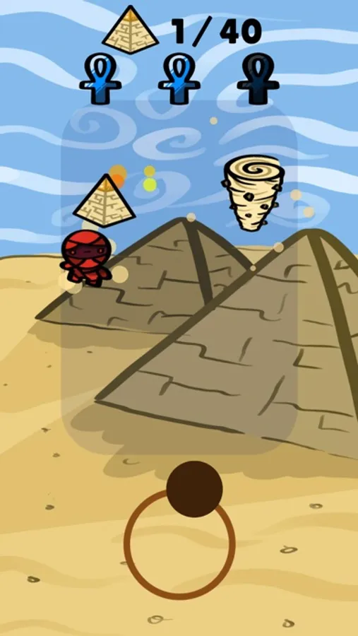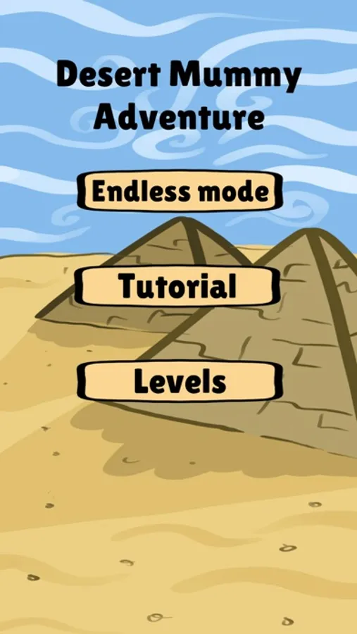 The game “Desert Mummy Adventure” is about a little mummy who really loves pyramids. Your goal is to collect as many pyramids as possible while dodging sand whirlwinds. Unlock new levels with faster and more challenging sand whirlwinds or try to collect as many pyramids as possible in endless mode!