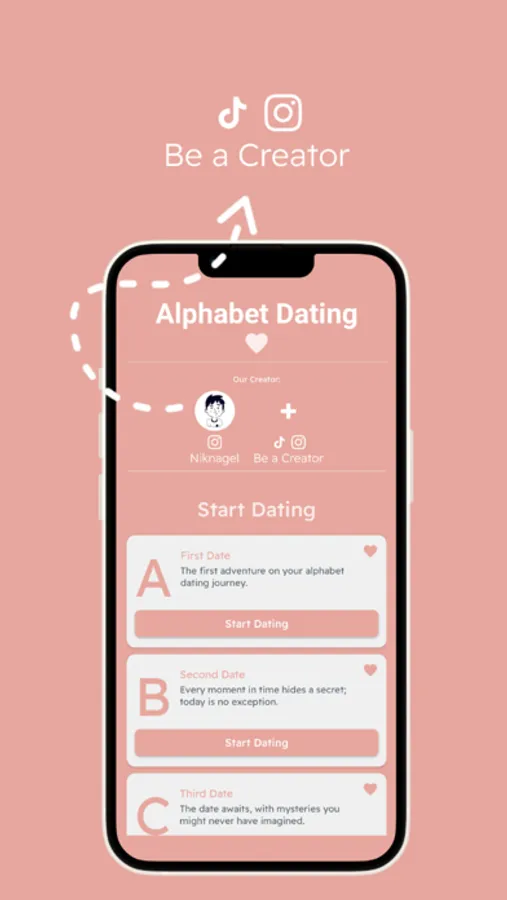 Introducing Alphabet Dating – the ultimate romance reviver! Dive into a world of 500 imaginative date ideas, curated from A-Z. Whether you're kickstarting a new relationship or reigniting the passion in a long-term one, our app ensures every date is a memorable adventure. Search by letter, mood, or occasion, and find perfect suggestions that fit your style. From 'A' for Art Gallery Visits to 'Z' for Zen Garden Picnics, there's a date idea for every alphabet. Optimize your love life, break the monotony, and discover new experiences. Join thousands who are rewriting their romance tales with Alphabet Dating. Download today and transform your dates from ordinary to extraordinary!