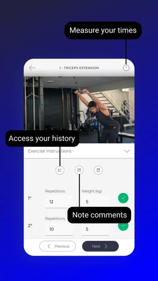 *Planes de Entrenamiento Personalizados:* Olvídate de los enfoques genéricos. Nuestra aplicación crea planes de entrenamiento adaptados específicamente a tus necesidades, nivel de condición física y metas. Cada rutina está acompañada de videos detallados que garantizan que estés realizando cada ejercicio de manera correcta y segura.