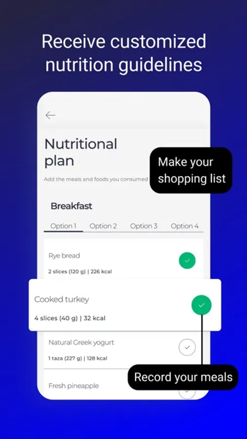 **Lista de Compras Integrada:** Simplificamos tu experiencia de compra con una lista de compras integrada basada en tu plan de alimentación. ¡Nunca más te sentirás abrumado en el supermercado!