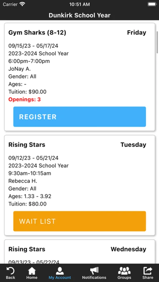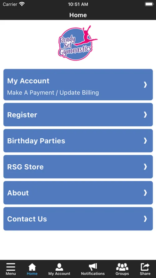 The Ready Set Gymnastics app allows you to manage your account with ease, register for classes, parties, and special events. You'll also receive important notifications about class changes, closings, registration openings, special announcements, and upcoming events.