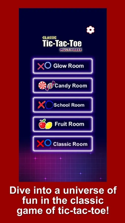 In Classic Tic-Tac-Toe Multiverse, also known as "noughts and crosses", "Xs and Os", or "XO", you'll not only enjoy the basic game but also explore multiple dimensions filled with fun. Dive into a bright room with neon lights that bring the pieces to life. Prefer a sweeter setting? Enter the candy room, where each piece is a delicious treat. Or perhaps you're feeling nostalgic for school, in which case, the schoolroom awaits you. And if you have a craving for fruits, don't miss the room where the pieces transform into apples and lemons. Last but not least, there's the classic pieces room for purists of the game.