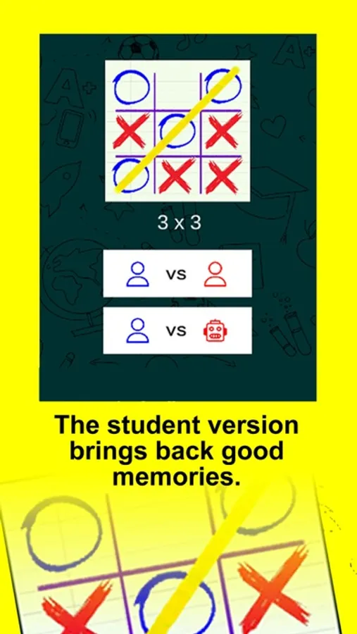 Got friends nearby? Classic Tic-Tac-Toe Multiverse is the perfect excuse for some friendly competition! But if you prefer to play solo, worry not, as this game includes artificial intelligence to challenge your strategic mind.