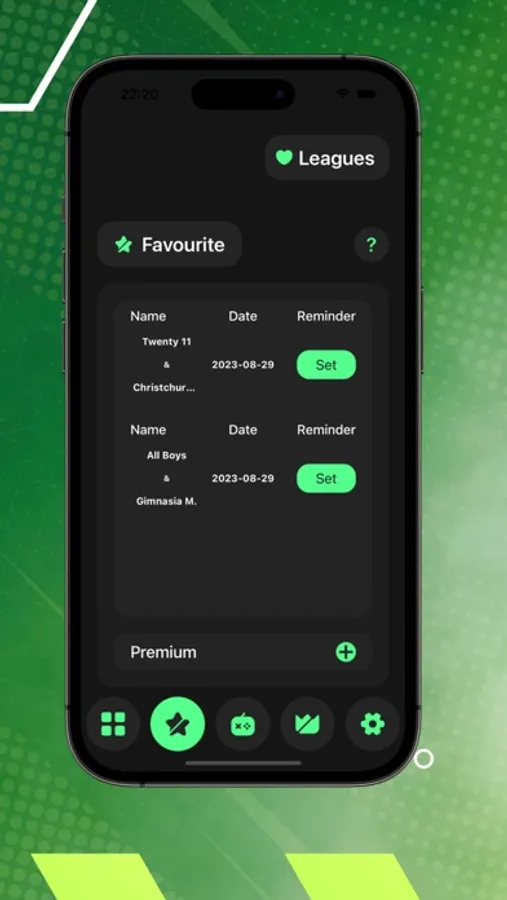 Add your favorite teams to your favorites and set yourself a reminder during the match so you don't miss anything.