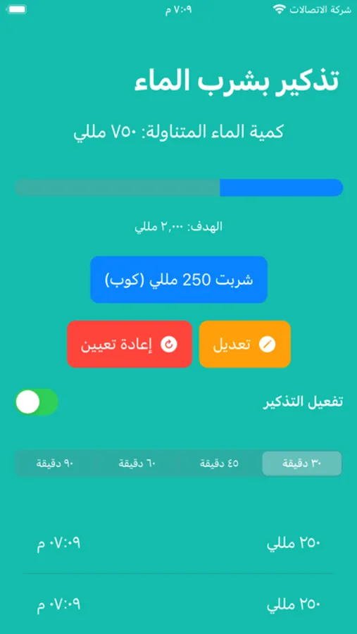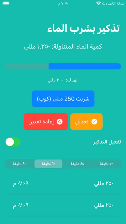 تعيين أهداف شرب الماء: يمكنك تعيين هدف يومي لكمية الماء التي ترغب في شربها. يعتمد ذلك على احتياجاتك الشخصية والتوصيات الصحية.