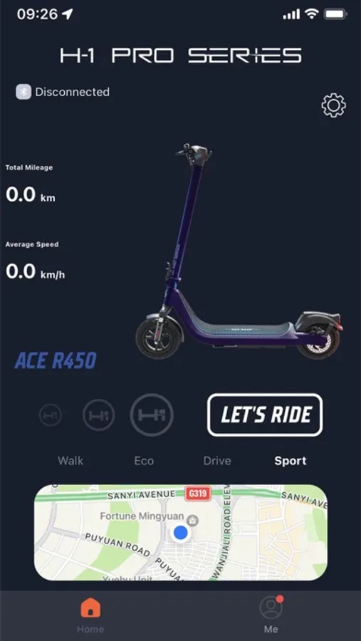 2. "LET'S RIDE" Button: Plan your route with a built-in map or track the distance, speed, and time of your next ride.