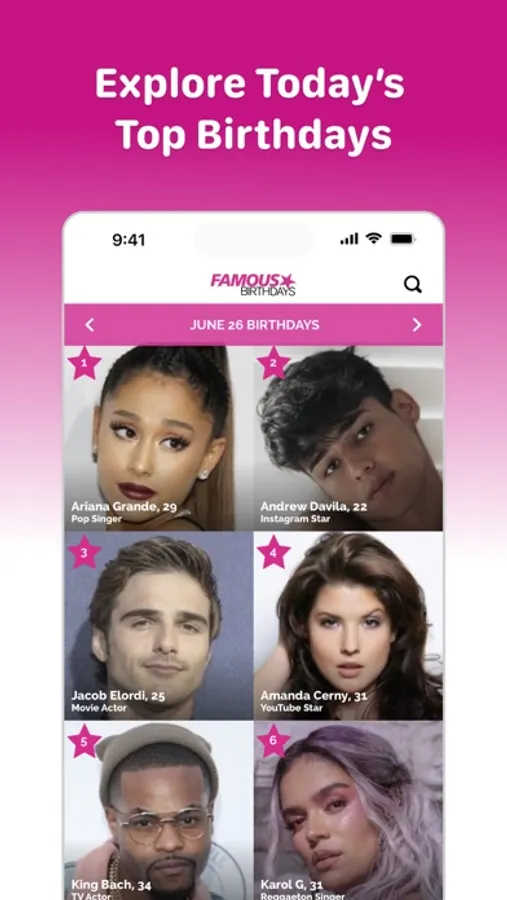 Famous Birthdays is the ultimate destination to learn about celebrities and creators and boost your favorites to increase their popularity. Start each day by browsing today's top birthdays and see who is trending, then put your knowledge to the test with engaging celebrity trivia games.