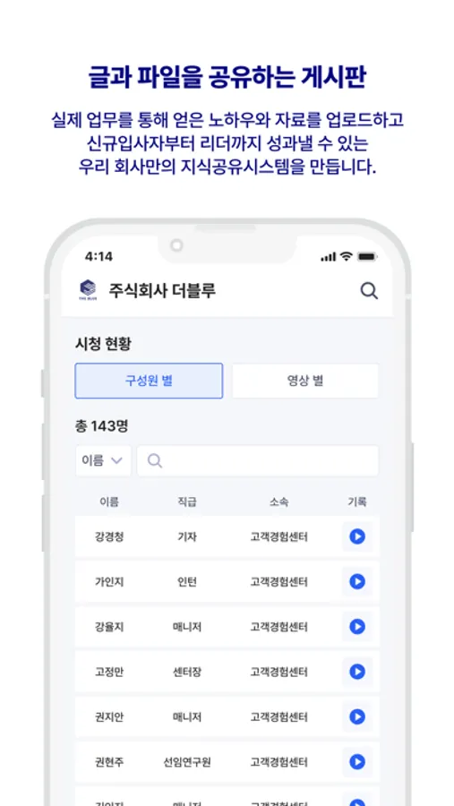 · 구성원들이 주제에 따라 콘텐츠를 구분하여 업로드하고 볼 수 있습니다.