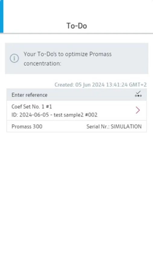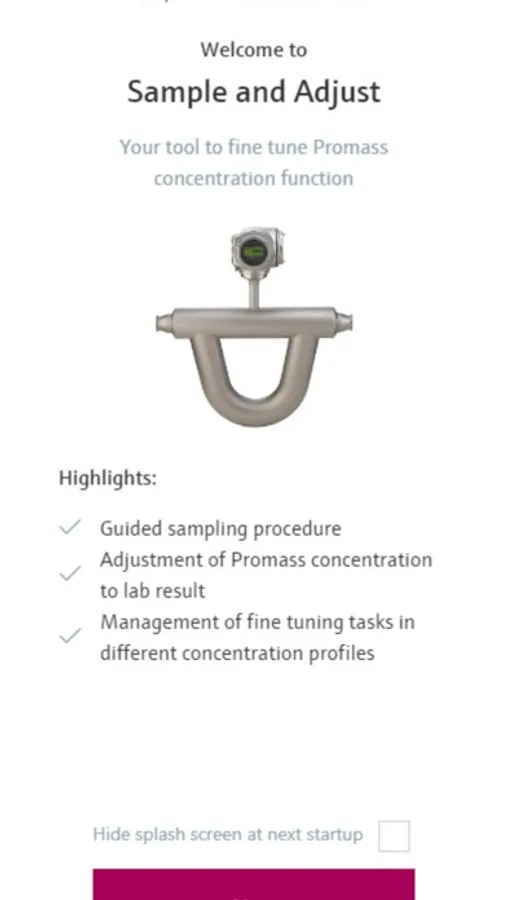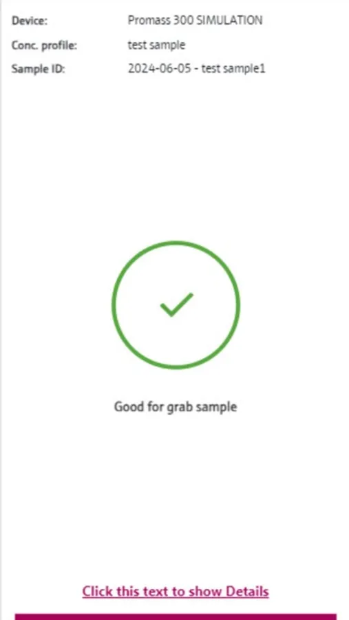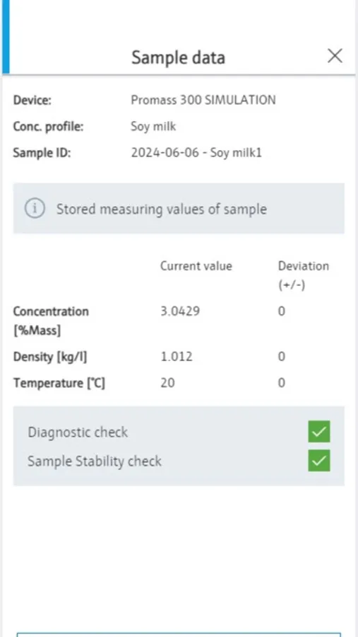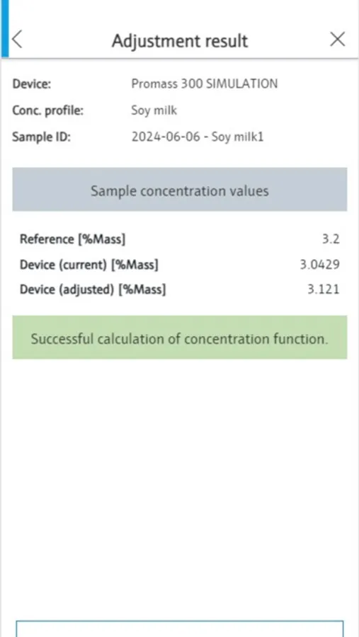 Sample and Adjust supports adjustment of Endress+Hauser Promass concentration measurement to match results from laboratory or other reference measurement.