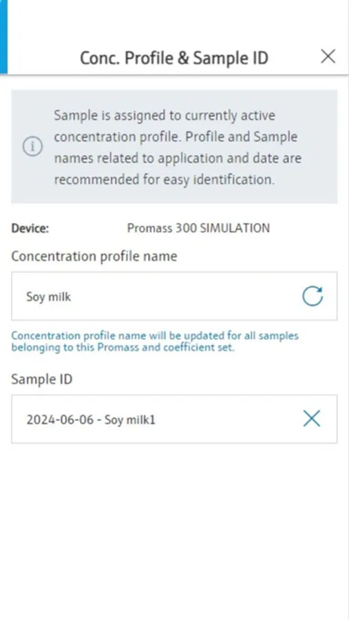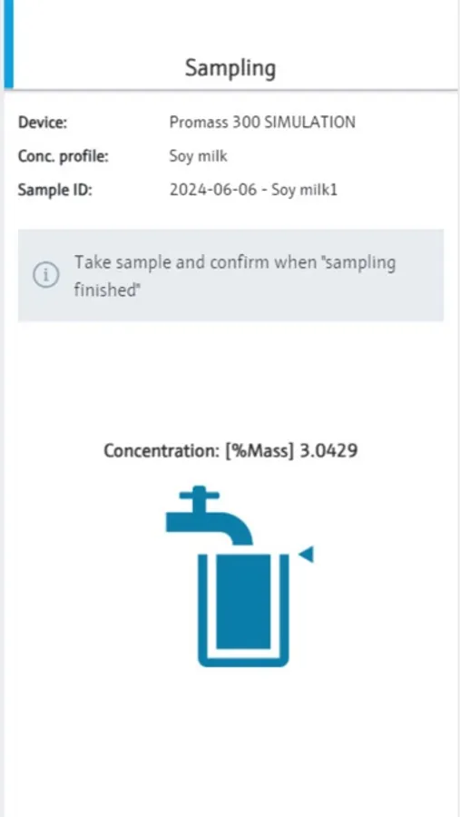 The App automatically registers the relevant data from Promass during sample taking via Wi-Fi connection.