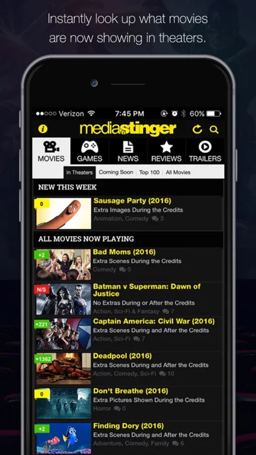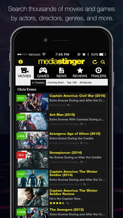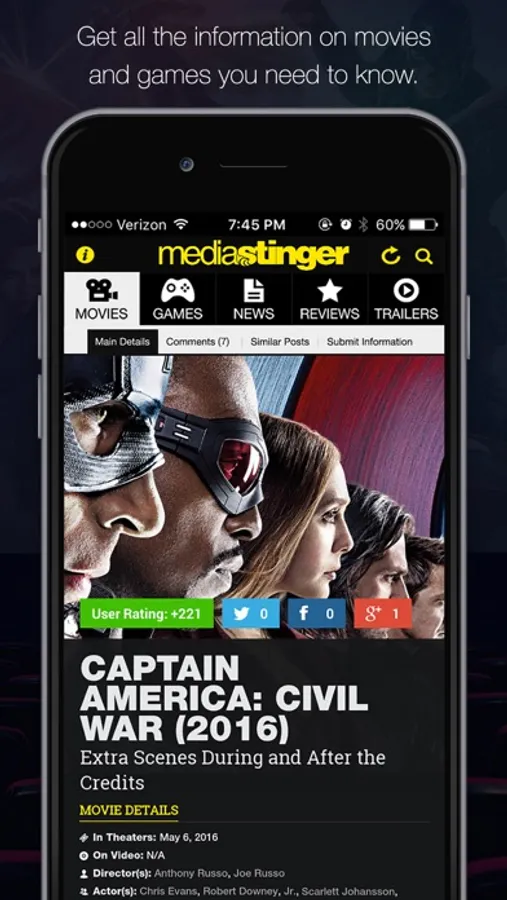 MediaStinger is a free and easy-to-use movie and video game database that allows users to find out whether thousands of movies and games have extra scenes (stingers) during and/or after the credits. Plus news, reviews, and trailers!