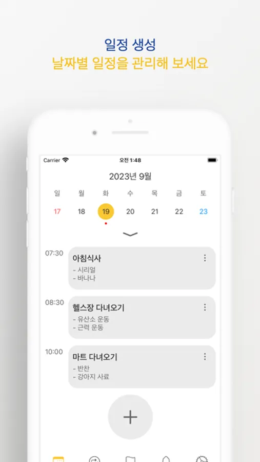 ● 날짜별로 일정을 생성하여 관리할 수 있어요