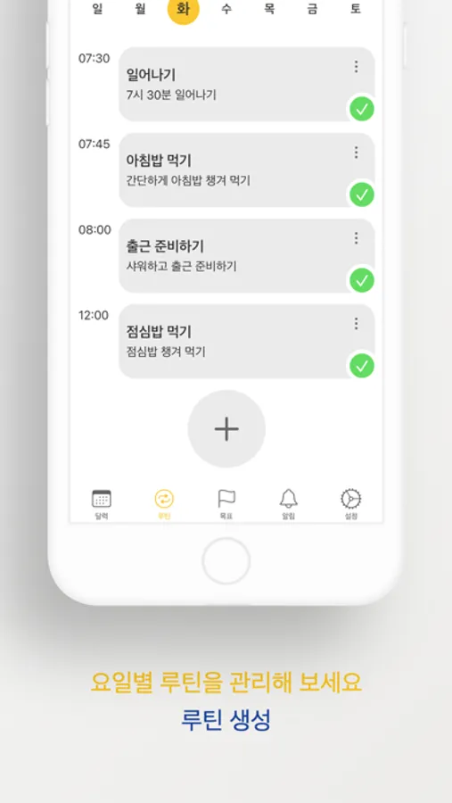 ● 요일별로 반복되는 루틴을 관리할 수 있어요