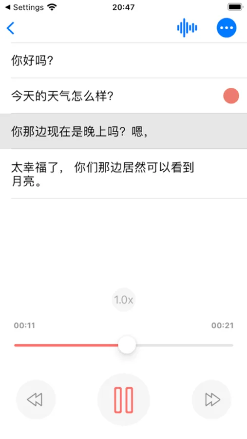 2. Auto-segmentation & Highlighting: As you play back your recordings, the corresponding text lights up for easy tracking.