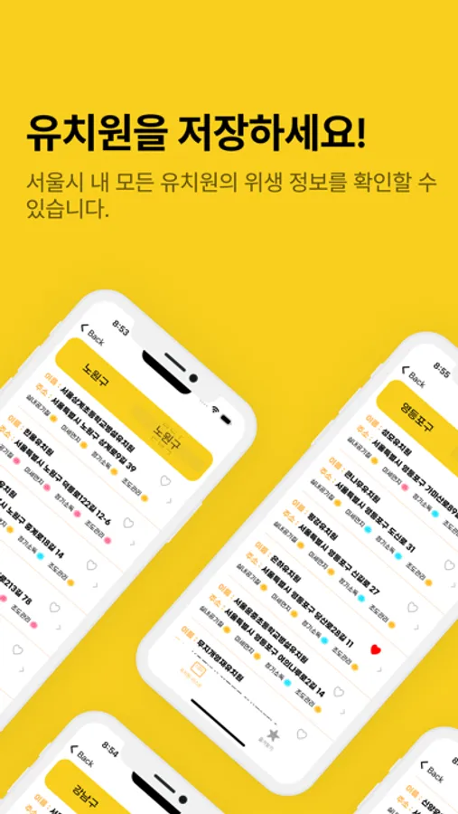 1. 서울시 내 모든 유치원의 위생 환경을 조회할 수 있습니다.