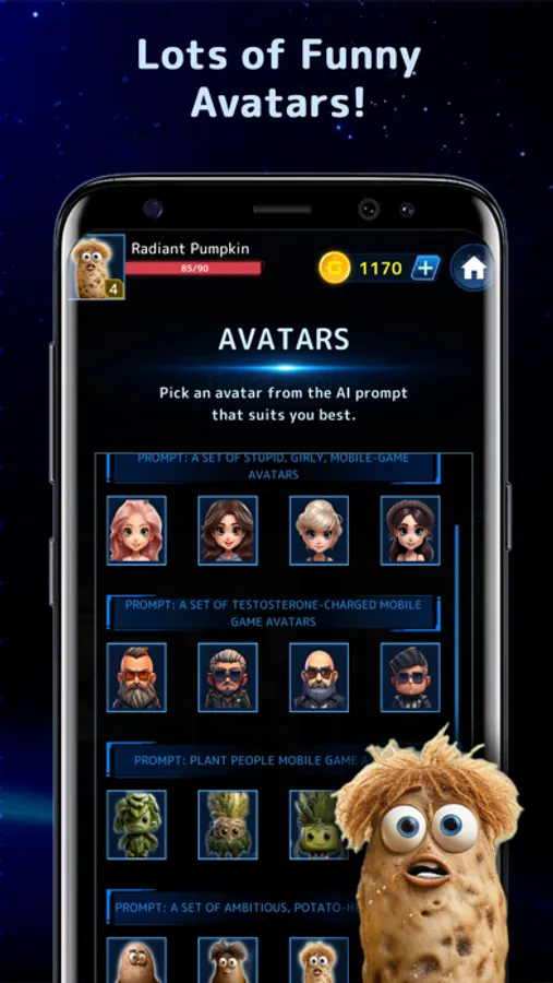Unlock hilarious avatars, each with a comical origin story.