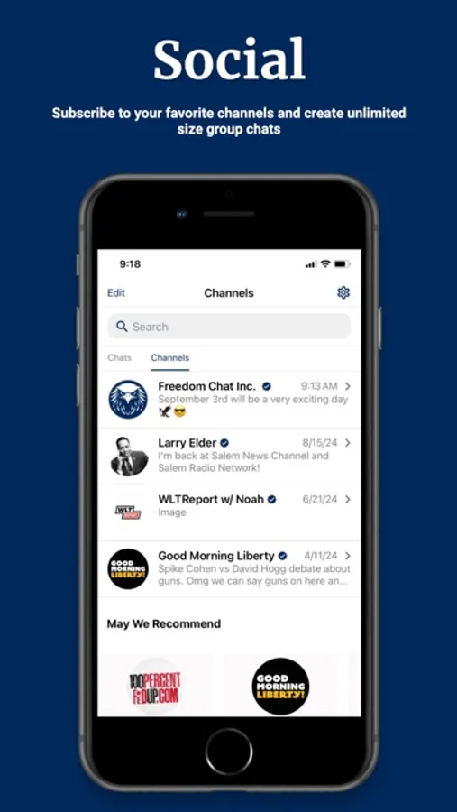 Freedom Chat channels are your personalized, private news feed. Subscribe to your favorite brands and influencers directly within Freedom Chat to stay updated on everything you care about. Your subscriptions and reactions are completely private—no one can see the channels you follow or your interactions with posts.