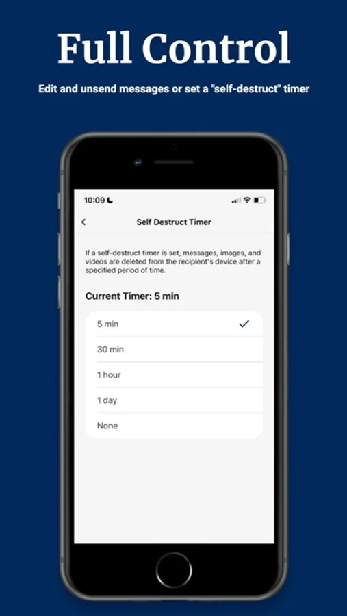 "Self-Destructing" Messages: Send messages that are automatically and conveniently deleted from the recipient’s device after a specified period of time.