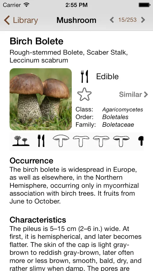 Most information is taken from Wikipedia but available offline - should there be no connection while collecting mushrooms in the forest.