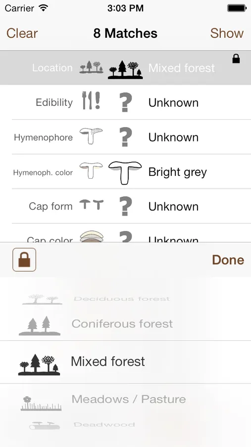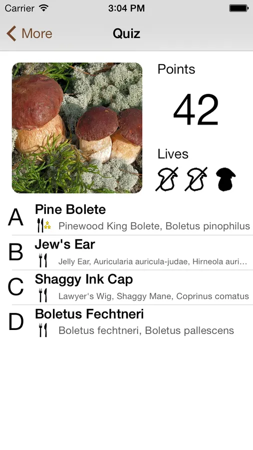 The standard version contains information on more than 300 kinds of mushrooms. You can record 500 places with five photos. There is also a Pro edition with additional functionality and a Free edition with only 50 types of mushrooms and limited functionality.