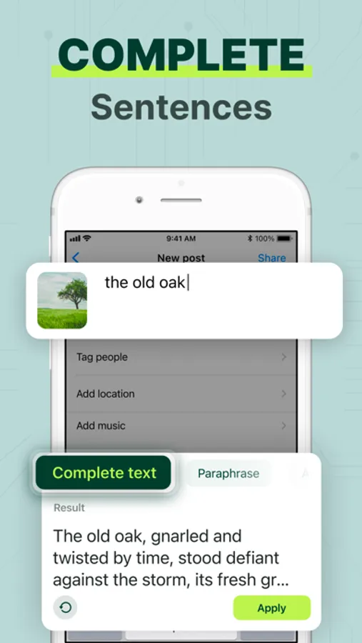 >>> Complete Your Thoughts: Finish your sentences faster with context-aware word suggestions.