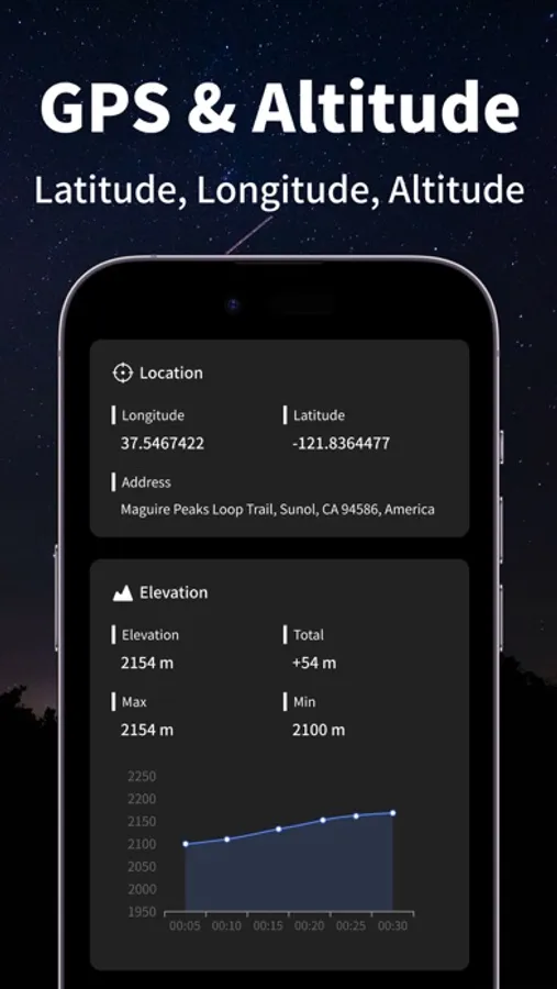 2. Altitude: Obtain the altitude data of the current positioning location in real time and save historical data;