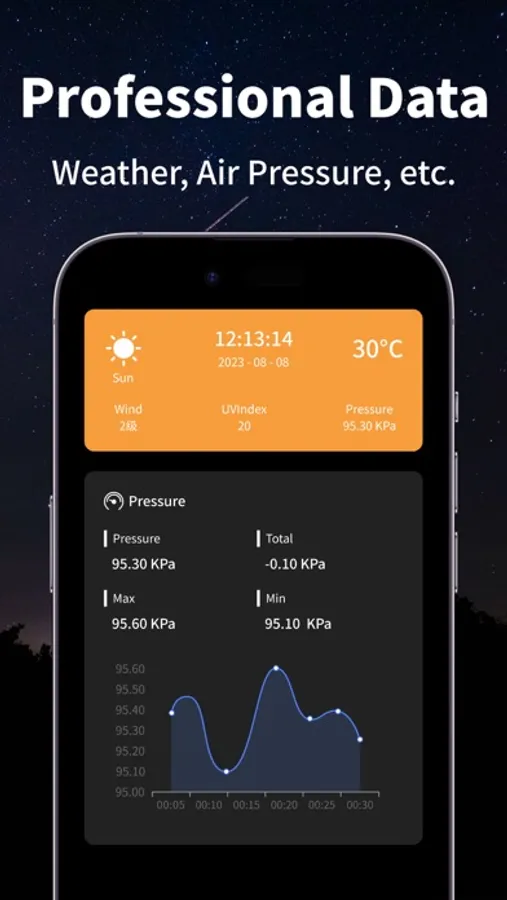 8. Boiling point: Get the boiling point data of water at the current altitude in real time;
