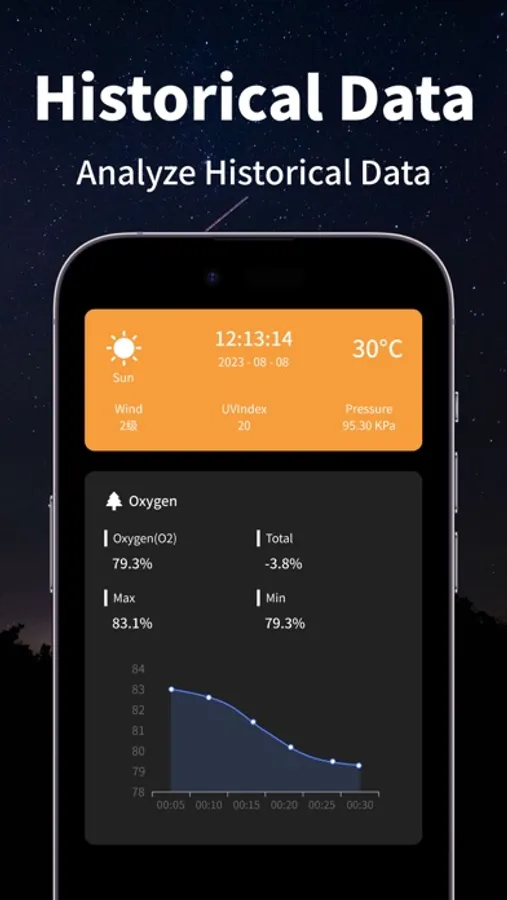 5. Oxygen: obtain current oxygen content data in real time and save historical data;