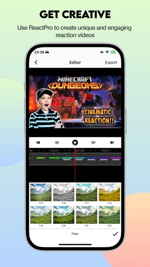 • Access premium chroma key, filters, and export options