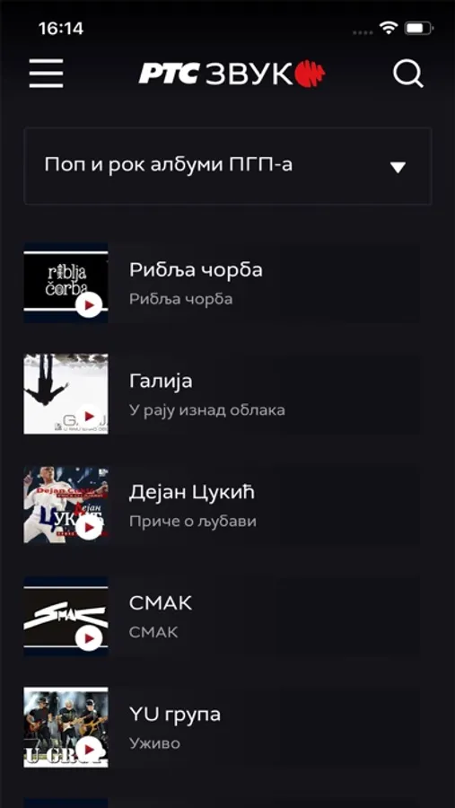 Продукција грамофонских плоча ПГП РТС предстваљена је на апликацији бројним издањима својих албума из данашње продукције и из богатог архива ПГП РТС-а.