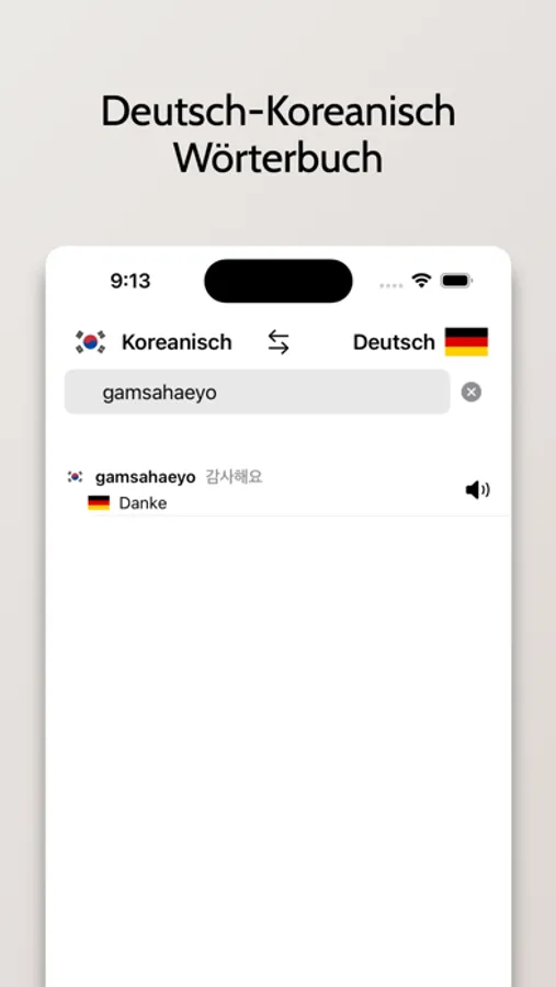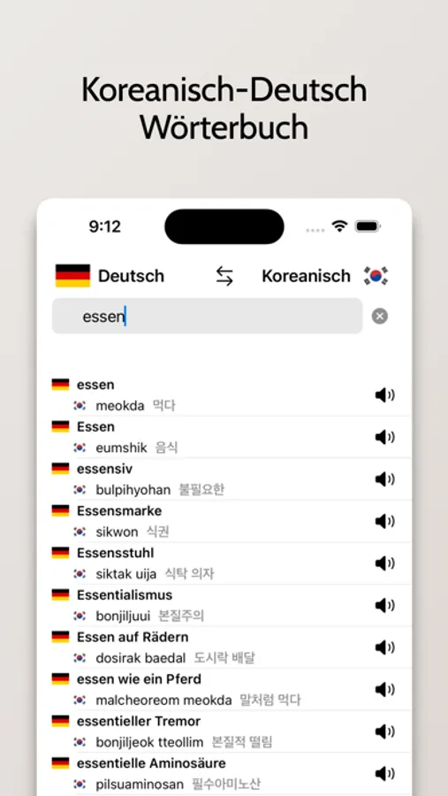 - Möglichkeit, um nach Wörtern sowohl auf Deutsch als auch auf Koreanisch suchen.