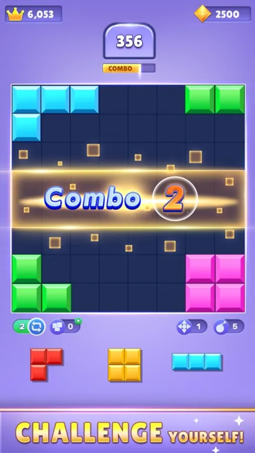 - CHALLENGE: Go Big or Go Home! This mode presents a 10x10 board grid for more complex puzzle-solving. Test your strategic thinking and push your limits to strive for higher scores.