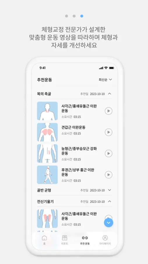 근골격과 체형 교정 전문가가 직접 설계한 운동 영상을 따라하며