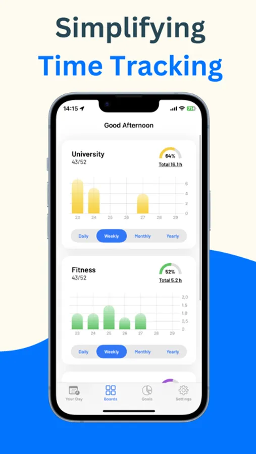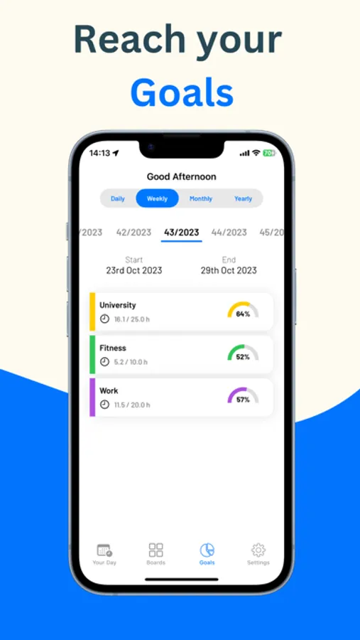 Goal Setting: Set targets for each board and timeframe, measuring your progress and staying motivated.