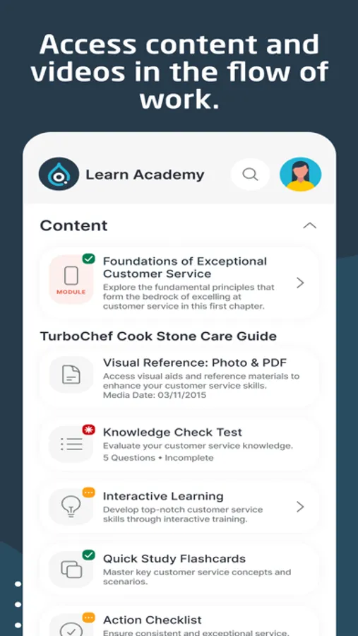 Access learning on the go - anytime and anywhere - with Wisetail’s intuitive mobile app. A companion app to the award-winning web-based Wisetail LMS platform, the app gives learners quick access to the resources needed to be successful and drive business forward. View training content and videos, complete certifications and assessments, or continue your learning journey, empowering every learner with the skills to grow and do.