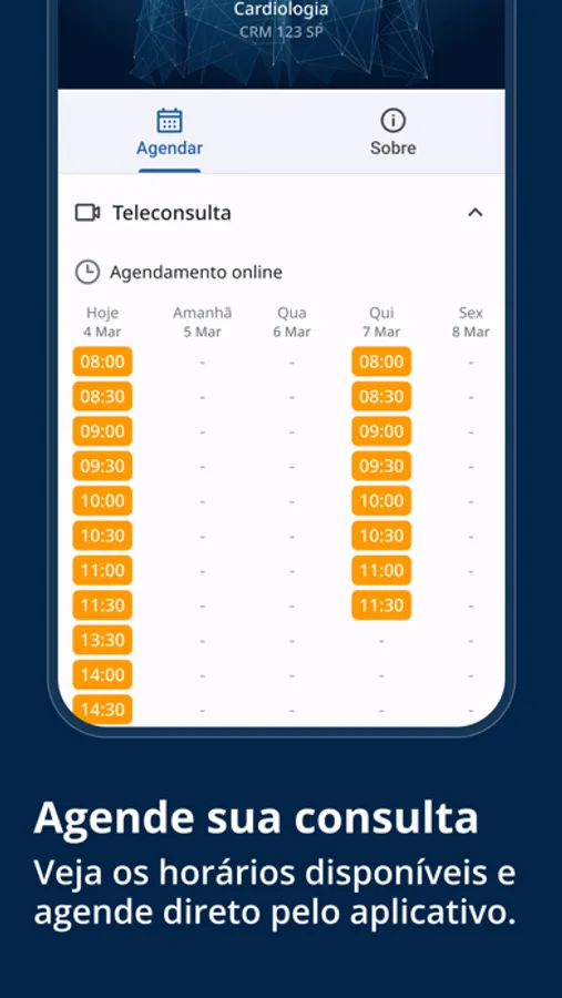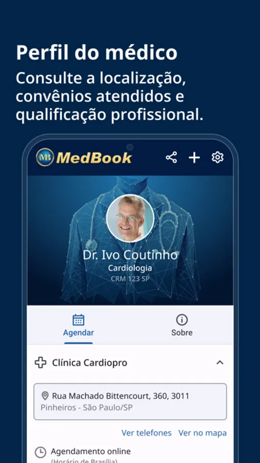 O MedBook reúne todas as informacões do seu especialista de confiança para você ver os horários disponíveis e agendar suas consultas.