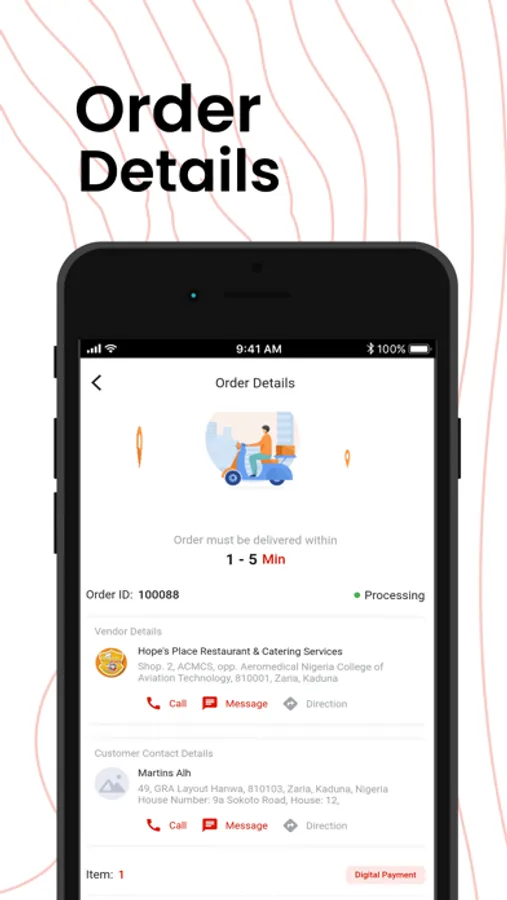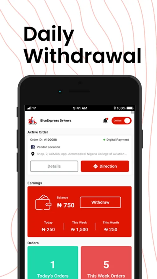 Seamless Order Management: Accept orders, view delivery details, and track your route effortlessly.