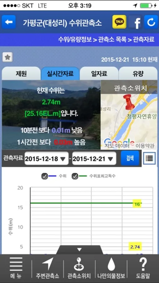 - 관측자료에 대한 SNS(카카오톡, 페이스북 메신져) 공유