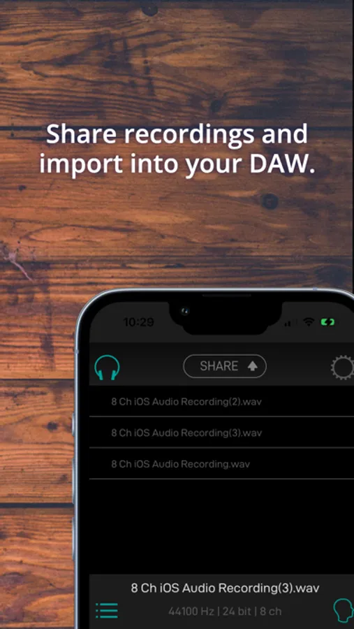 Our app saves your audio recordings as pristine multichannel .wav files. This ensures uncompromised audio quality, making it perfect for professional use. Easily import these files into your preferred DAW for further editing and enhancement with the Spatial Mic Converter plugin.