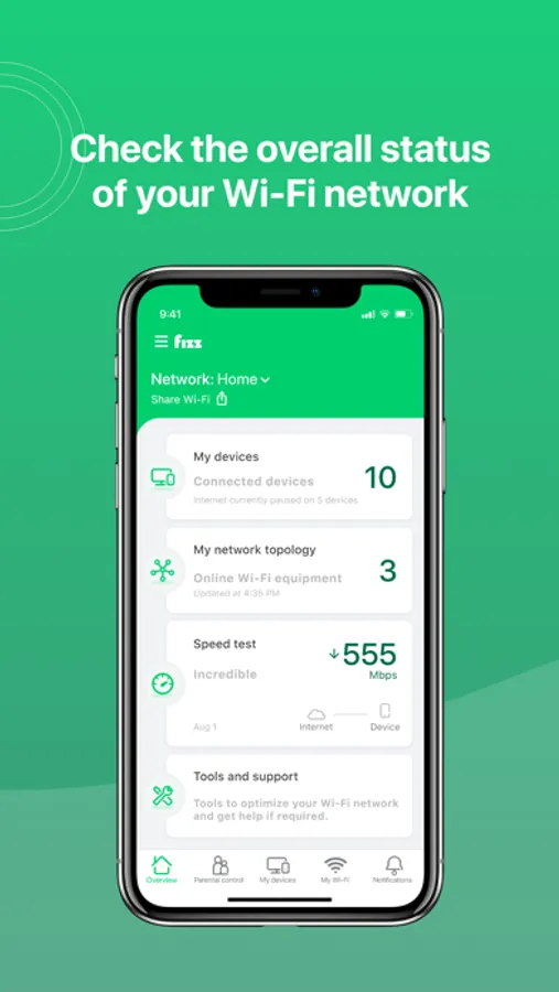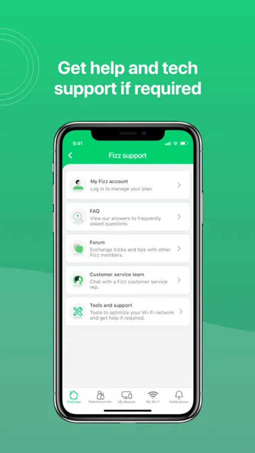 App to manage your Fizz Home Internet service and have your Wi-Fi network at your fingertips, whether you’re at home or not. View important details such as connected devices and troubleshooting alerts. Diagnose and optimize your home Wi-Fi network easily directly from your smart device.