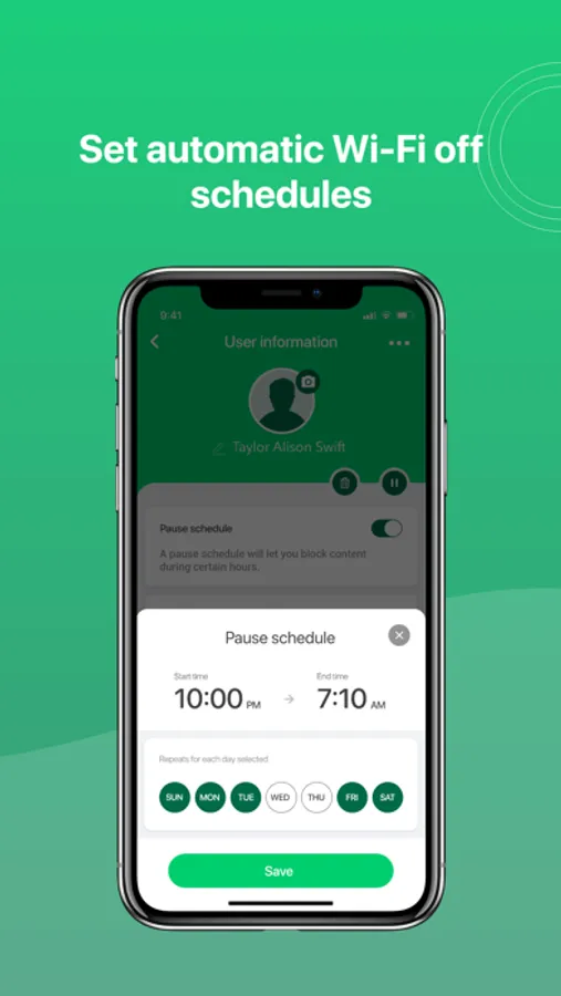 • Control online access for kids with automatic Wi-Fi off bedtime schedules.