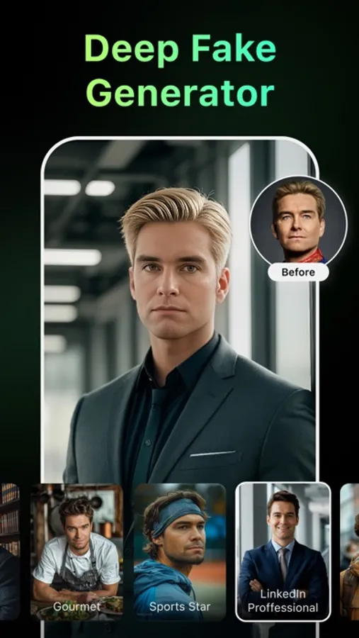 AI Face Swap app is best app to generate great photos and videos of yourself using most creative effects and templates. Use AI power of latest technology for best face swaps.