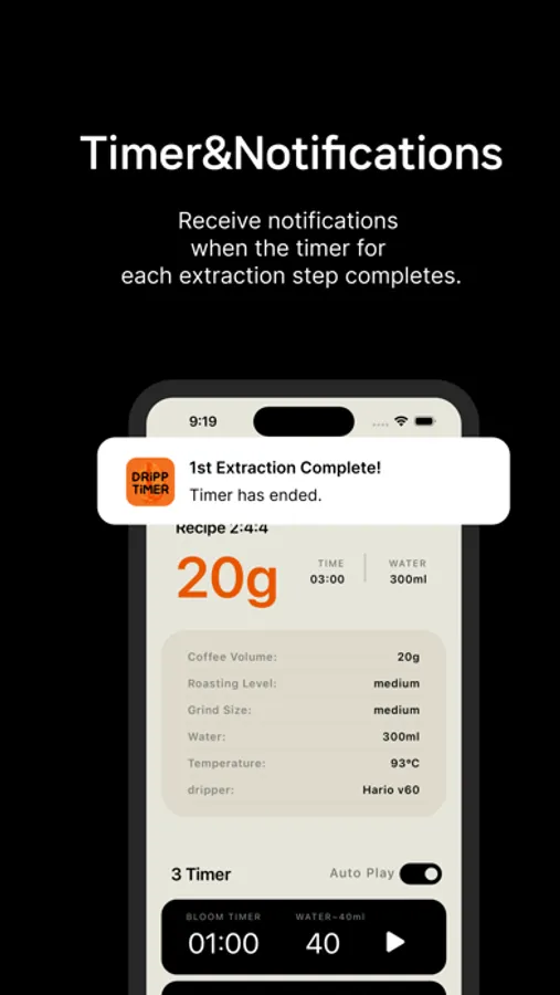 DrippTimer will notify you with alerts, keeping you informed about the timing for each extraction phase.