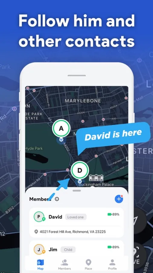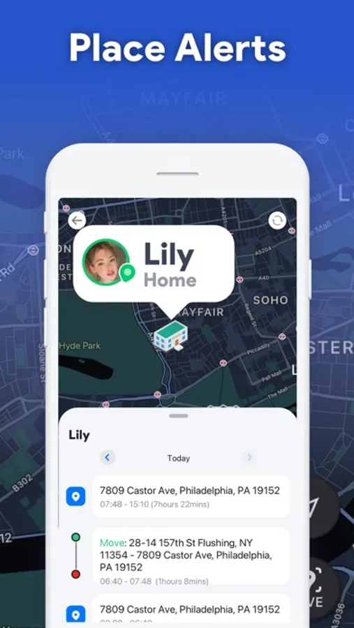 Enhance your peace of mind by adding specific places to the map and receiving instant notifications when your family members arrive or depart from these locations. Effortlessly keep track of their movements and ensure everyone's safety with this feature.