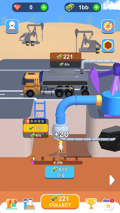 You run a oil company. You are lucky to find an oil field in the desert. Now let the device start working and dig out the first barrel of oil for you. Constant oil means wealth. You can constantly upgrade your devices to make them more efficient. Dig your oil well into the heart.
