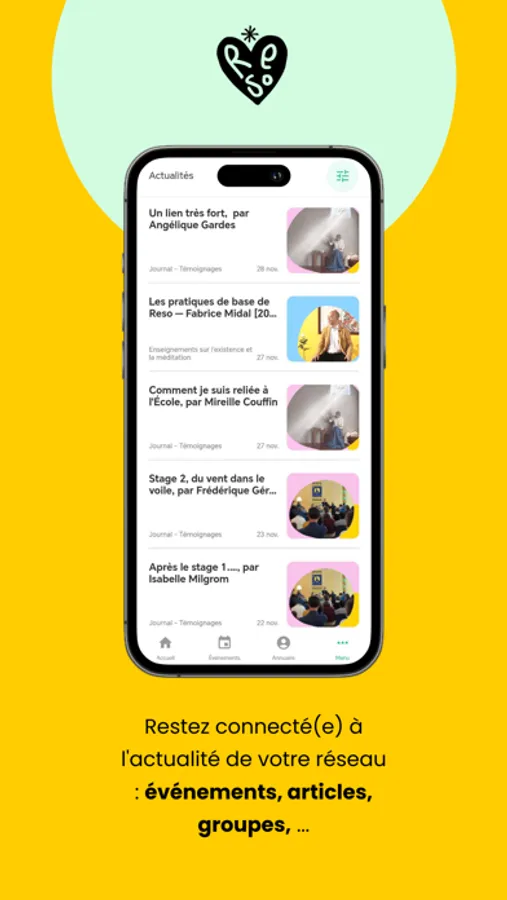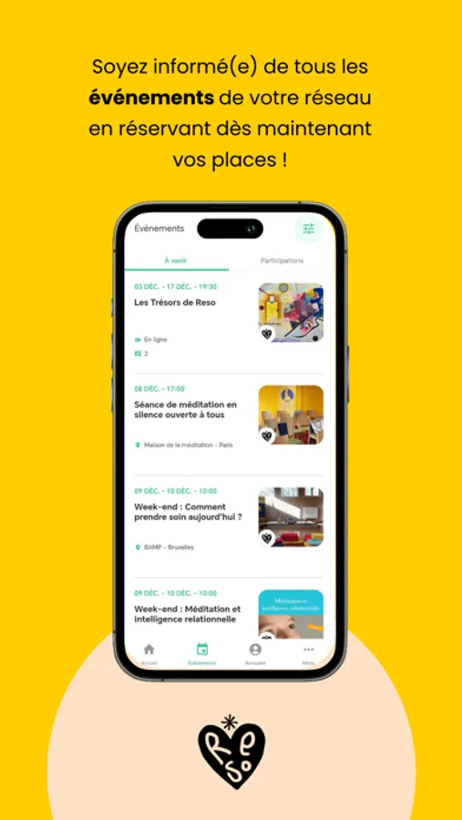 App de Reso, l'association pour méditer, se former et être ensemble.