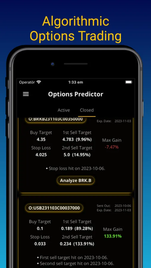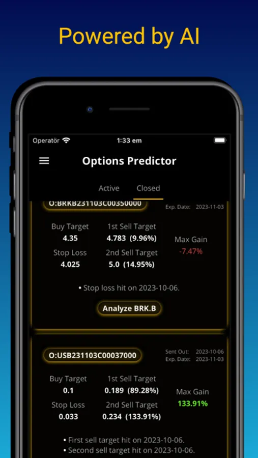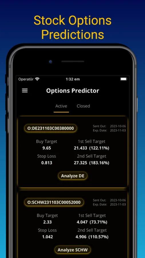 In options trading, timing is everything. Options Trading AI : OpPreds keeps you in the loop with instant push notifications. Get alerted the moment a predicted option hits its sell target or stop loss, allowing you to act decisively. We also notify you at the start of each market day about new stock options predictions, so you never miss an opportunity.