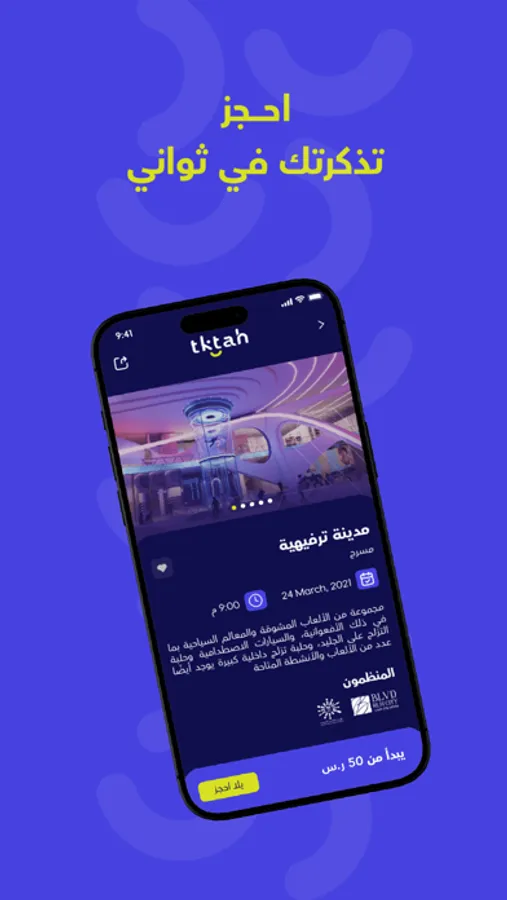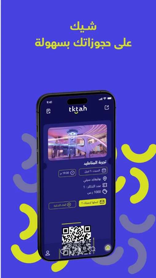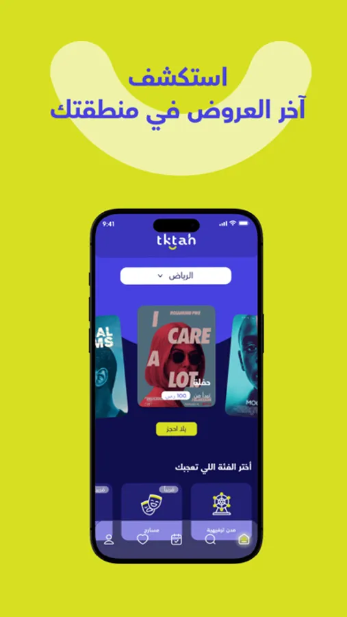حمّل التطبيق الآن وخلّك على اطلاع بأحدث الفعاليات الترفيهية والعروض اللي تناسب اهتماماتك، كل هذا وأكثر في تطبيق تكتة.
